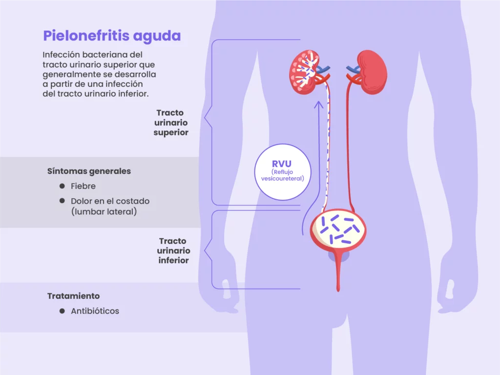 La infección urinaria es una enfermedad que ocurre cuando entran microbios, especialmente bacterias, al sistema que transporta y elimina la orina del cuerpo. Este sistema incluye los riñones, los conductos que llevan la orina (uréteres), la vejiga y la uretra. La forma más común afecta la vejiga y se llama cistitis. Aunque cualquier persona puede tener una infección urinaria, es más común en las mujeres.